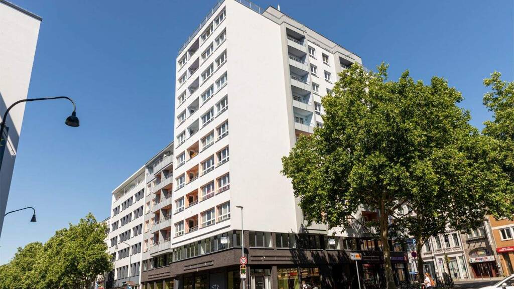 Neue und teilmöblierte 1-Zimmer-Apartments und 2-Zimmer-Wohnungen am Hansemannplatz für Singles und Paare: Durch den Um- und Ausbau von Gewerbeflächen im 1. und 7. Obergeschoss sind in zentraler Innenstadt-Lage moderne Wohnungen entstanden. Die neue Ausstattung besteht aus Vinyl-Design-Boden in Holzoptik, weißen Wänden, modernen Bädern, Einbauküchen, Garderobenschrank, teilweise Tisch und Stühle und Deckenbeleuchtung. Zu jeder Wohnung gehört ein Kellerabteil. Die Zugänge zu den Wohnungen sind mit dem Aufzug und über Laubengänge gegeben. Eine energetische Sanierung der Fassade, Balkonsanierung und Fensteraustausch wurde in 2017 durchgeführt.