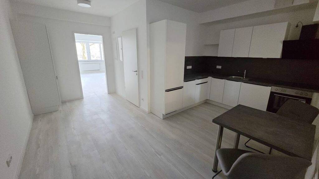 Mit neuer, moderner Ausstattung empfängt Sie dieses Apartment im 1. Obergeschoss. Direkt beim Eintreten befinden Sie sich im offenen Koch- und Essbereich mit moderner Einbauküche, Fenster, Tisch und 2 Stühlen. Über den weiterführenden Flur gelangen Sie in das ca. 26 m² große Wohn-/Schlafzimmer mit großer Fensterfront. Gefallen wird Ihnen auch das moderne Bad mit Walk-In-Dusche und modernen Fliesen.