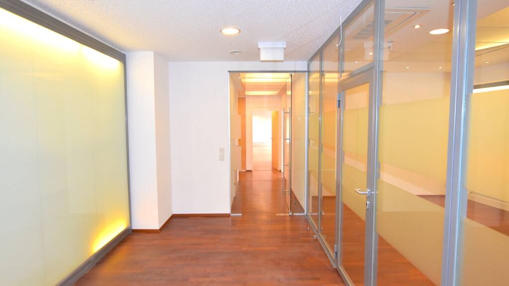 Die Fläche besteht aus sieben Büroräumen und einem Meetingraum. Der Meetingraum kann durch eine hochwertige Trennwand unterteilt werden. Eine voll ausgestattete Küche ist ebenfalls vorhanden.