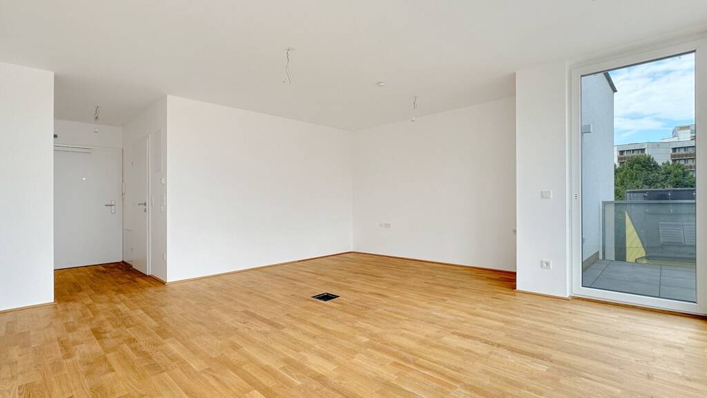 Im 1. Obergeschoss eines Neubauhauses befindet sich diese smarte 1-Zimmer-Wohnung. Sie verfügt über einen praktischen Vorraum und ein Badezimmer, das mit einer Dusche, einem WC und einem Waschmaschinenanschluss ausgestattet ist. Die über 25 m² große Wohnküche bietet ausreichend Platz für eine ausziehbare Couch, wodurch Wohn- und Schlafbereich geschickt kombiniert werden können. Angrenzend lädt die 3,85 m² große Loggia zum Entspannen ein.