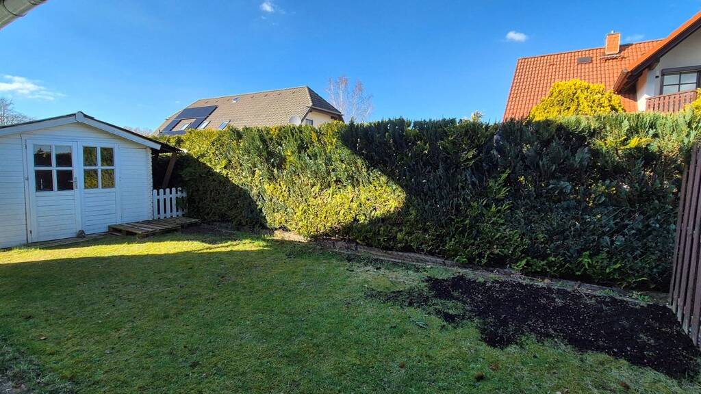 Der zugehörige Außenbereich ist praktisch angelegt und bietet einen windgeschützten Gartenbereich zum verweilen und entspannen. Hier kann in aller Ruhe den Vögeln und dem Rauschen des Windes in den Bäumen gelauscht werden. Das Grundstück bietet für die gesamte Familie viel Platz für Freizeit und Erholung.
