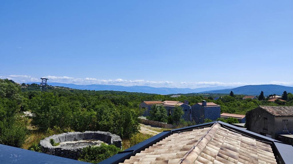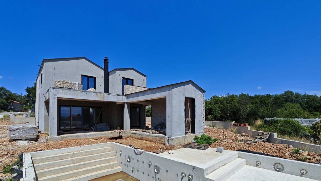 In einem ruhigen Teil des Landesinneren der Insel Krk, in der Nähe des malerischen Vrbnik, befindet sich diese moderne Luxusvilla, die eine Kombination aus zeitgenössischem Design, technologischer Innovation und absoluter Privatsphäre bietet - ideal für einen Urlaub, aber auch als Investition. Das Erdgeschoss des Hauses besteht aus einem geräumigen offenen Wohnzimmer mit Esszimmer und Küche sowie einer Gästetoilette. Große Glaswände verbinden den Innenraum mit einem angelegten Garten, in dem sich ein Swimmingpool mit Sonnendeck, eine überdachte Terrasse und eine moderne Sommerküche befinden. Ein Nebengebäude mit Sauna bietet zusätzlichen Komfort - perfekt zum Entspannen das ganze Jahr über. Im Obergeschoss befinden sich vier elegante Schlafzimmer, jedes mit eigenem Bad, die allen Familienmitgliedern oder Gästen maximalen Komfort und Privatsphäre bieten. Das Haus ist mit luxuriösen Möbeln, hochwertiger Ausstattung und einem intelligenten Managementsystem ausgestattet, während integrierte Solarkollektoren für Energieeffizienz sorgen. Die perfekte Mischung aus Eleganz, Komfort und Technologie - eine Immobilie, die alle Anforderungen an eine moderne Luxusvilla an der Adria erfüllt.