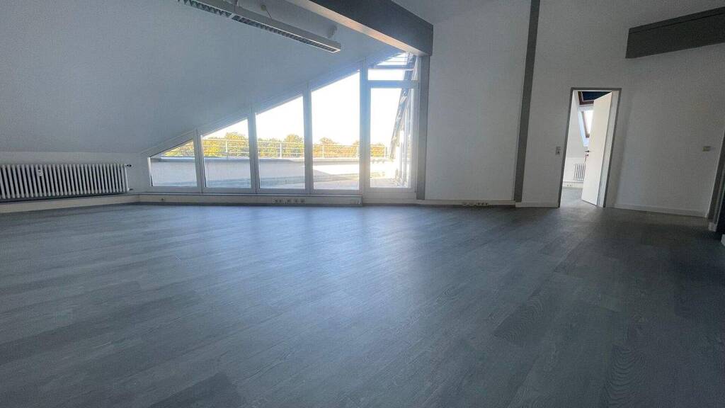 Die angebotenen Büroräume im Dachgeschoss zeichnen sich durch eine beeindruckende Raumhöhe von etwa drei Metern aus, was für ein großzügiges und offenes Raumgefühl sorgt.