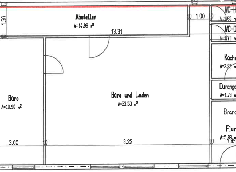 Im rückwärtigen Bereich der Fläche stehen, wie auf dem Grundriss zu erkennen, zwei weitere Räume zur Verfügung: