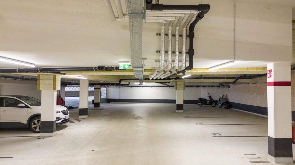 Die Tiefgarage ist modern und gut beleuchtet, was Ihnen ein hohes Maß an Komfort und Sicherheit bietet. Der Zugang erfolgt über ein elektrisches Rolltor, welches nur durch autorisierte Personen geöffnet werden kann.