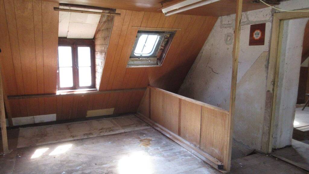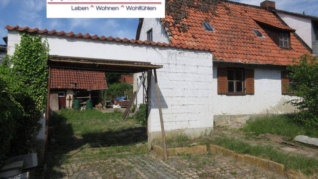 Zur Zeit befindet sich auf dem Grundstück eine sehr stark sanierungsbedürftige bzw. abrissreife, teilunterkellerte Doppelhaushälfte, welche ca. um das Jahr 1920 erbaut wurde. Das Objekt verfügt über eine Garage sowie einen Carport. Weitere Park- und Stellplatzmöglichkeiten sind auf dem Grundstück vorhanden, so etwa in der Durchfahrt neben dem Haus.
