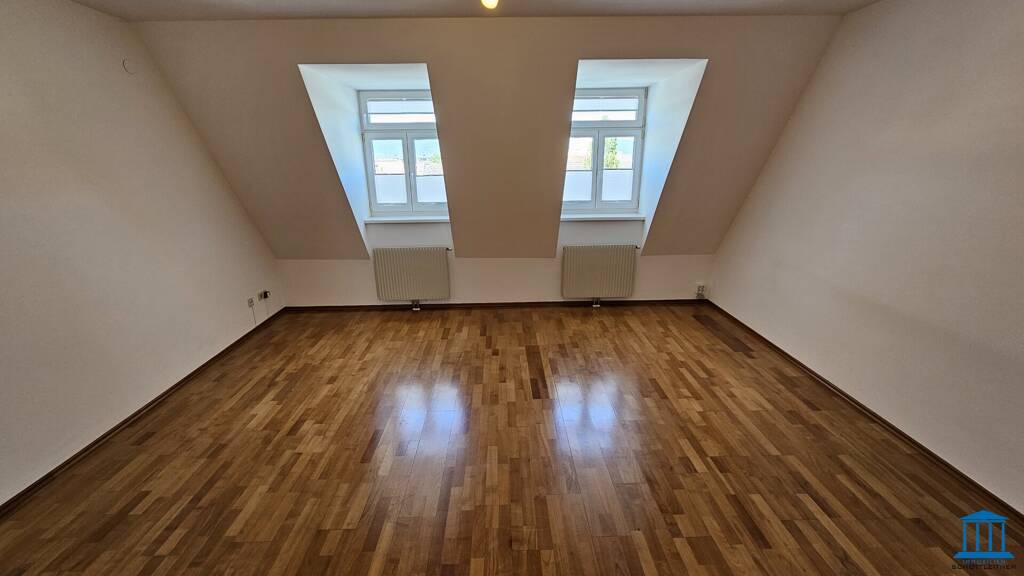 Im Zentrum von Wiener Neustadt, nahe dem Bahnhof, wurde ein imposantes Stadthaus unlängst aufwändig saniert, in welchem diese im Dachgeschoss gelegene ca. 80,59 m² große Wohnung zur neuerlichen Vermietung gelangt.