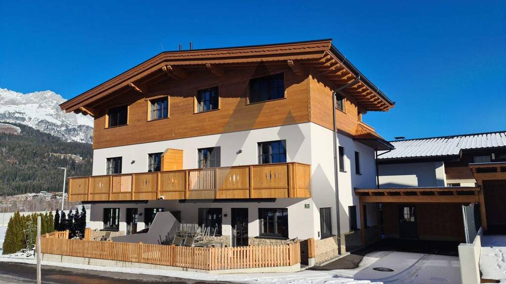 In einer sonnigen Ortsrandlage von Ellmau mit herrlichem Blick auf den Wilden Kaiser befindet sich dieses Chalet, welches in einem Ensemble mit drei anderen Einheiten errichtet wurde. Jedoch ist die Einheit komplett eigentständig und verfügt über ein eigenes Grundstück (Realteilung).