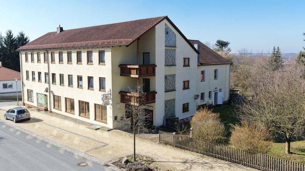 Die ehemalige Pension/Gastwirtschaft mit einer Gesamtwohn- und Nutzfläche von rund 750 m² wurde im Jahr 1965 in solider bauweise errichtet, und bietet vielfältige Nutzungsmöglichkeiten für Gastronomie, Veranstaltungen, Handwerk oder innovative Wohn- oder Ferienkonzepte auf einem Grundstück von ca. 1.699m². Der ehemalige Tanzsaal wurde bereits im Jahr 1954 errichtet und ist mit dem Hauptgebäude verbunden.