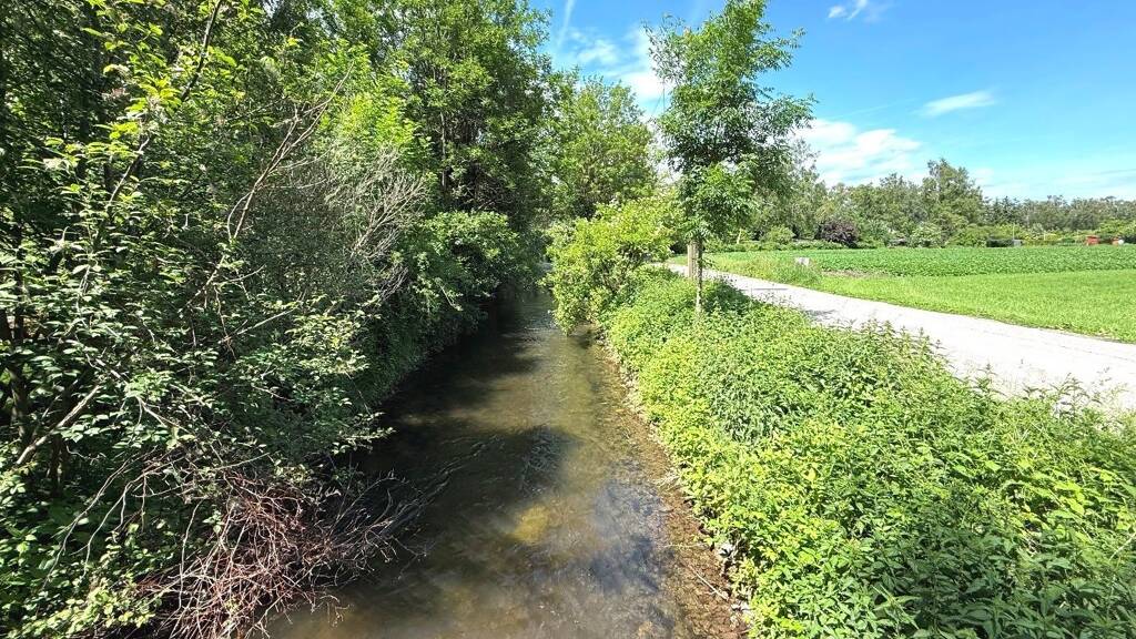 Ein besonderes Highlight ist der Zugang über eine private Fußgängerbrücke, die direkt über den Gröbenbach führt. Dadurch ergibt sich ein geschützter, fast abgeschlossener Charakter des Grundstücks - ideal für Freizeit, Erholung oder individuelle Nutzungskonzepte. Die angrenzenden Naturflächen schaffen zusätzlich ein Gefühl von Weite und Rückzug.