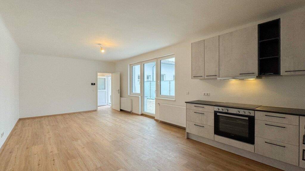 Bereits beim Betreten der Wohnung offenbart sich die gelungene Verbindung aus hochwertiger Sanierung und einladender Wohnatmosphäre. Über einige Stufen erreicht man die neu sanierte Terrasse, die den idealen Übergang zwischen Innen- und Außenbereich bildet. Beim Betreten der Wohnung empfängt Sie ein stilvoll gestalteter Vorraum, der mit einer großzügigen Garderobenlösung ausgestattet ist. Dieser Bereich bietet nicht nur ausreichend Stauraum für Kleidung und Accessoires, sondern überzeugt auch durch seine funktionale Eleganz, die einen ersten Eindruck von Exklusivität vermittelt. Die klare Linienführung und die hochwertigen Materialien setzen bereits hier den Ton für den besonderen Charakter der Wohnung. Zur Linken des Eingangsbereichs öffnet sich die beeindruckende Wohnküche, die mit einer modernen Einbauküche ausgestattet ist. Diese ist nicht nur funktional, sondern begeistert mit ihren durchdachten Stauraumlösungen, die sie zum idealen Ort für kulinarische Kreationen machen. Mehrere Fenster durchfluten den Raum mit natürlichem Tageslicht und sorgen für eine optimale Belüftung - perfekt, um beim Kochen eine frische und inspirierende Atmosphäre zu genießen. Die offene Gestaltung der Wohnküche lädt zu gemeinsamen Mahlzeiten oder geselligen Abenden ein und verbindet Funktionalität mit einem einladenden Flair. Über die Wohnküche gelangen Sie in das luxuriös ausgestattete Badezimmer, das mit einer modernen, bodengleichen Dusche, einem hochwertigen WC und einem eleganten Waschtisch überzeugt. Ein weiteres Fenster sorgt für hervorragende Lichtverhältnisse und eine natürliche Belüftung, die den Raum zu einer Wohlfühloase macht. Das Herzstück der Wohnung ist das großzügig geschnittene Schlafzimmer, das durch seine intelligente Raumaufteilung und seine lichtdurchflutete Atmosphäre besticht. Der Raum bietet ausreichend Platz für ein komfortables Bett, einen geräumigen Kleiderschrank und weitere individuelle Gestaltungsmöglichkeiten. Die ruhige Lage und die harmonische Gestaltung machen das Schlafzimmer zu einem idealen Rückzugsort, der Erholung und Geborgenheit verspricht.