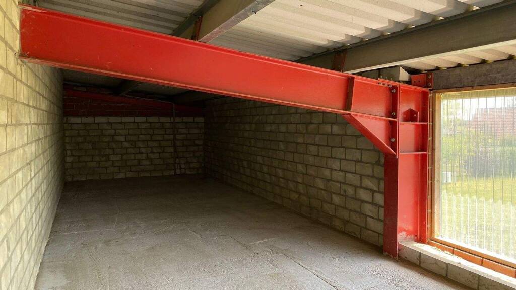 - Halle mitte, mit ca. 224,5 m², Deckenhöhe ca. 4,6 bis 7,0 m, Sektionaltor (4 m breit x 4 m hoch)