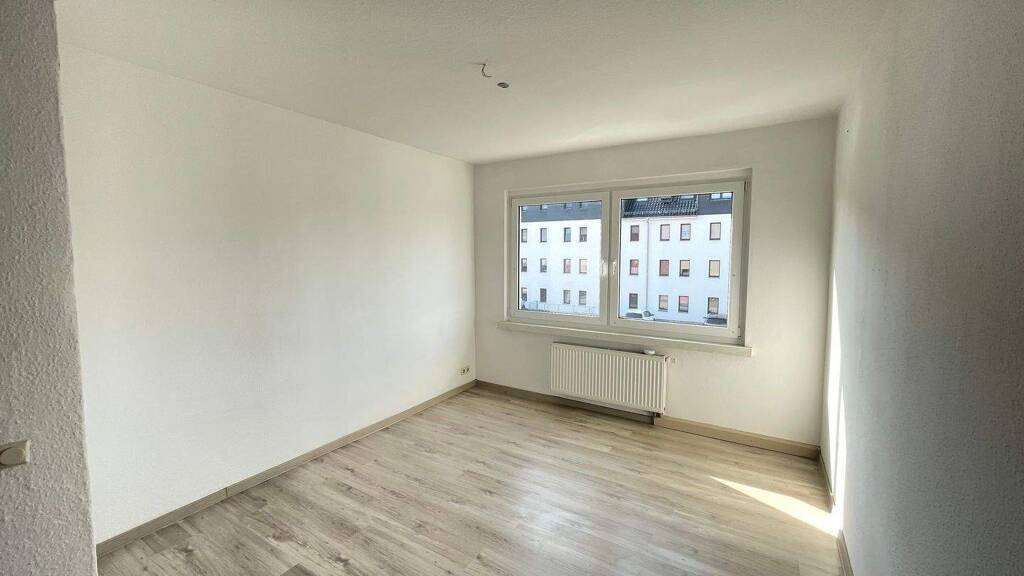 Die Wohnung wurde 2011 saniert und wird renoviert übergeben. Die Wände sind mit Raufaser tapeziert und werden frisch weiß gestrichen. Die Böden sind mit Laminat oder Fliesen ausgelegt. Das geflieste Bad mit Wanne und Toilette ist großräumig. Eine Waschmaschine hat Platz. Ein Hauswirtschaftsraum ist vorhanden.