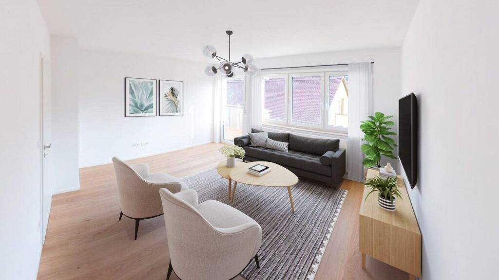 Bereits beim Betreten der Wohnung fällt der elegante Eiche-Holzdielenboden ins Auge, der sich harmonisch durch sämtliche Wohnräume zieht und in Kombination mit den glatt verputzten, weißen Wänden für ein zeitgemäßes Wohngefühl sorgt. Großzügige Fensterfronten und angenehme Lichtverhältnisse verleihen der Wohnung eine helle, einladende Atmosphäre.