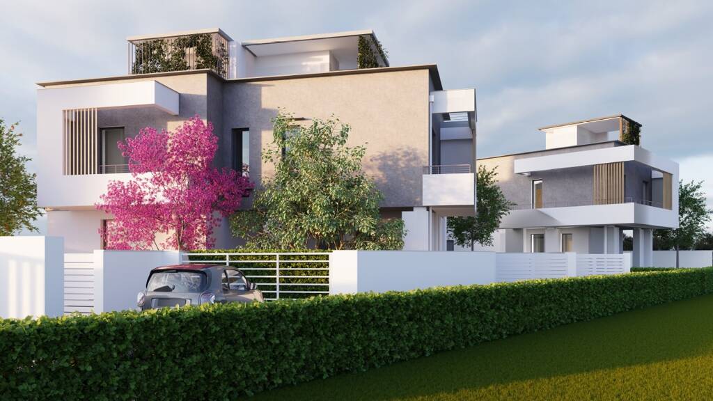 Jede dieser beeindruckenden Villen wird mit äußerster Sorgfalt und Aufmerksamkeit für Details gebaut und überzeugt durch eine exquisite Bauqualität, die der Energieklasse A entspricht. Dies bedeutet, dass die Villen mit Blick auf Nachhaltigkeit und Effizienz konzipiert und gebaut werden, ohne dabei an Eleganz oder Komfort einzubüßen. Jede Einheit besticht zudem durch ihre moderne Architektur, die sowohl funktional als auch ästhetisch ansprechend ist. Große, bodentiefe Fenster prägen das äußere Erscheinungsbild der Villen und sorgen für sonnendurchflutete Wohnräume, die Luftigkeit und Offenheit ausstrahlen. Alle vier Objekte überraschen mit umfangreichen Raumangeboten und einer ideal aufgeteilten Raumaufteilung, die insgesamt drei großzügige Schlafzimmer und ebenso viele komfortable Badezimmer umfasst. Ein wahres Fest für alle Sinne sind die liebevoll gestalteten Außenbereiche, die den luxuriösen Charakter dieser Immobilien unterstreichen. Genießen Sie entspannte Stunden in Ihrem eigenen Garten, entspannen Sie auf der Terrasse oder den Balkonen, oder genießen Sie den atemberaubenden Ausblick von der großzügigen Dachterrasse.