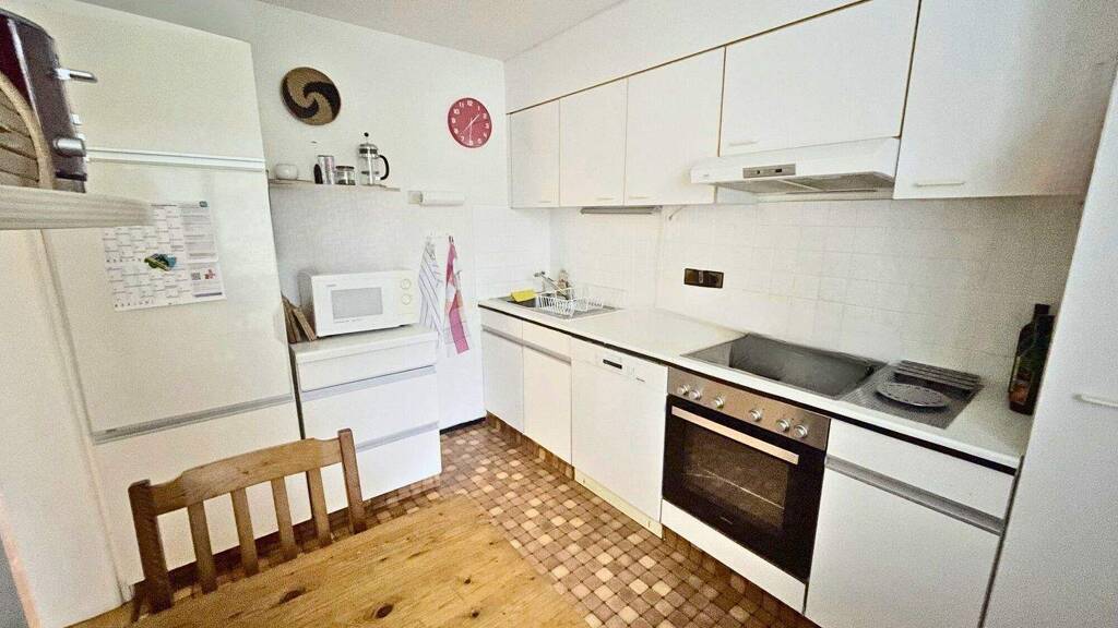Zwei Terrassen laden zum Entspannen im Freien ein, während der angrenzende Garten zusätzlichen Freiraum für Freizeitaktivitäten bietet. Die letzte Modernisierung fand 2015 statt, was die Ausstattung auf einem modernen Stand hält. Eine Einbauküche inklusive Geräte ist vorhanden.