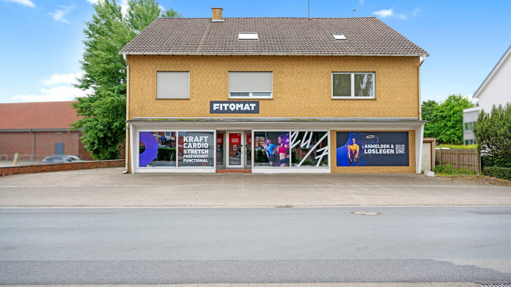 Die Immobilie wurde ursprünglich in den 1930er-Jahren errichtet, 1971 erweitert und zwischen 2005 und 2007 umfassend modernisiert. Sie besteht aus einem 2,5-geschossigen Hauptbau mit Satteldach und Klinkerfassade. Die Gewerbefläche im Erdgeschoss ist straßenseitig vollflächig verglast und derzeit an ein Fitnessstudio (Selbstbedienungskonzept) vermietet. Der rückwärtige Bereich bietet zusätzliche Garagen- und Abstellflächen.