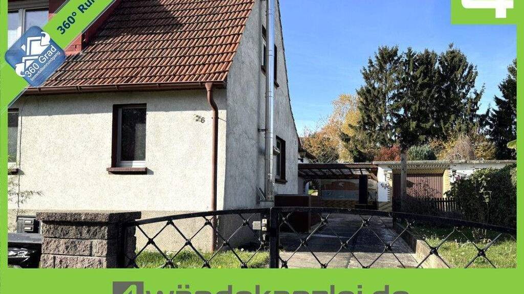 Hinter dem Haus gibt es eine schöne Grünfläche mit Terrasse. Ein großer Carport samt Garage sorgt für genügend Stellfläche für Ihren Fuhrpark. Dieses Grundstück bietet durch seine offene Gestaltung ganz viel Potenzial.