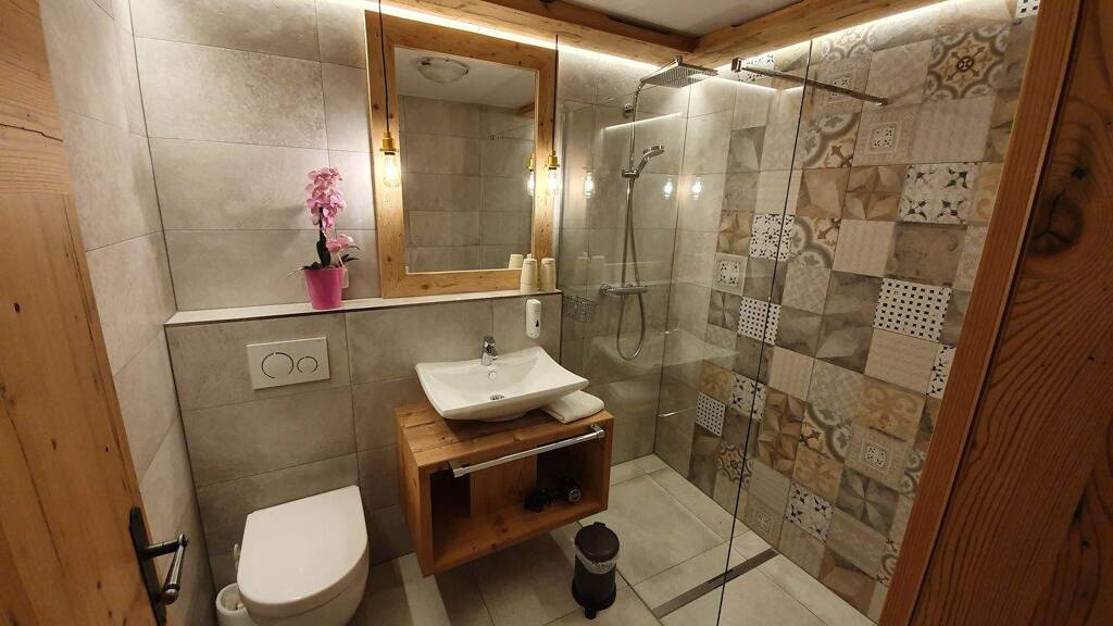 Das Bestandsgebäude wurde im Jahr 2005 umfassend saniert. Seither erfolgten laufend Modernisierungen und stilvolle Erweiterungen, sodass sich die Pension heute als wahres Juwel präsentiert. Die Zimmer sind mit hochwertigem Vollholz-Mobiliar aus der Region ausgestattet, das alpine Gemütlichkeit mit langlebiger Qualität verbindet. Besonders hervorzuheben sind die modernen Bäder, die 2021 größtenteils erneuert wurden und den Gästen höchsten Komfort bieten.
