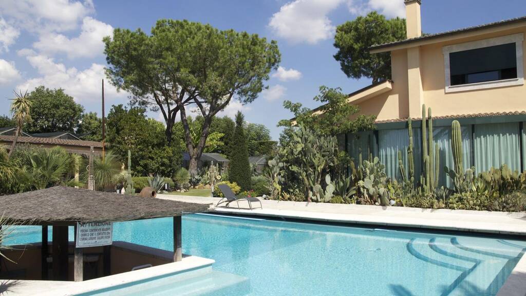 Grottarossa, in der bezaubernden Landschaft des Parco di Roma Golf Club, entlang der Via Flaminia nuova, in einer ruhigen Seitenstraße, umgeben von viel Grün, befindet sich dieses prestigeträchtige Anwesen, das mit hochwertigen Materialien renoviert wurde. Die Villa von ca. 900 Quadratmetern ist über einen Haupteingang zugänglich, der sich durch den geometrischen tunesischen Marmorboden auszeichnet, vor dem sich ein spanischer Olivenbaum mit einem breiten Stamm befindet, der die Privatsphäre des Eingangs schützt.