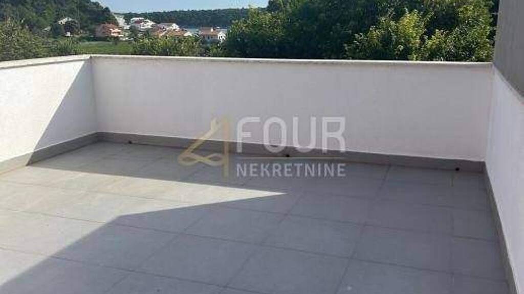 Zweistöckige Wohnung in Palit auf der Insel Rab, in einem kleineren Neubau in einer ruhigen und gepflegten Siedlung. Die Gesamtwohnfläche beträgt 72,25 m2, zusätzlich verfügt die Wohnung über einen Balkon und eine geräumige Terrasse mit einem schönen Blick auf das Meer. Das Grundstück verfügt über einen Außenparkplatz und im Erdgeschoss des Gebäudes gibt es einen gemeinsamen Lagerraum, den die Bewohner nutzen können.