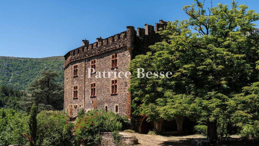 Situated in a dominant position on its rocky spur, the château with its crenelations can be seen from afar. The first foundations date back to the 12th century, but the current building probably dates back to the 15th century, when the fiefdom came under the control of the Bishop of Mende. It passed through various families through marriage and, in the 18th century, was damaged and then sold at auction during the Revolution. Acquired at the beginning of the 20th century, it has remained in the same family, who have maintained it as a holiday home until the present day. The 300-metre-long path leading to the property arouses curiosity and does not reveal its secrets until the last minute. The path opens out onto a magnificent view and the plain, which highlight the main building and the scene worthy of a painting. Built in heavy, unplastered local schist, with thick walls, the château has a certain austerity about it, typical of the Cévennes. The architecture retains characteristic traces from its origins, in particular cross windows and arched doors, while a remnant of a parapet walk enlivens the north façade. The layout of the windows is fairly regular, with ashlar surrounds and corner quoins, and small-paned windows. Built slightly below and not overlooked, the "Bancels" farmhouse occupies the southern slope. It includes a renovated house. Finally, the small house "la Gleyzette", with an independent access is slightly below to the west. The façades are made up of a schist bonding, only rendered on the dwelling that closes off the farm building to the west, with mostly straight windows of varying sizes. The roofs are of two slopes with lauze tiles. The uniqueness and unity of the estate can be seen immediately, and the absence of neighbours and low visibility from outside translate into peace and quiet for its occupants.