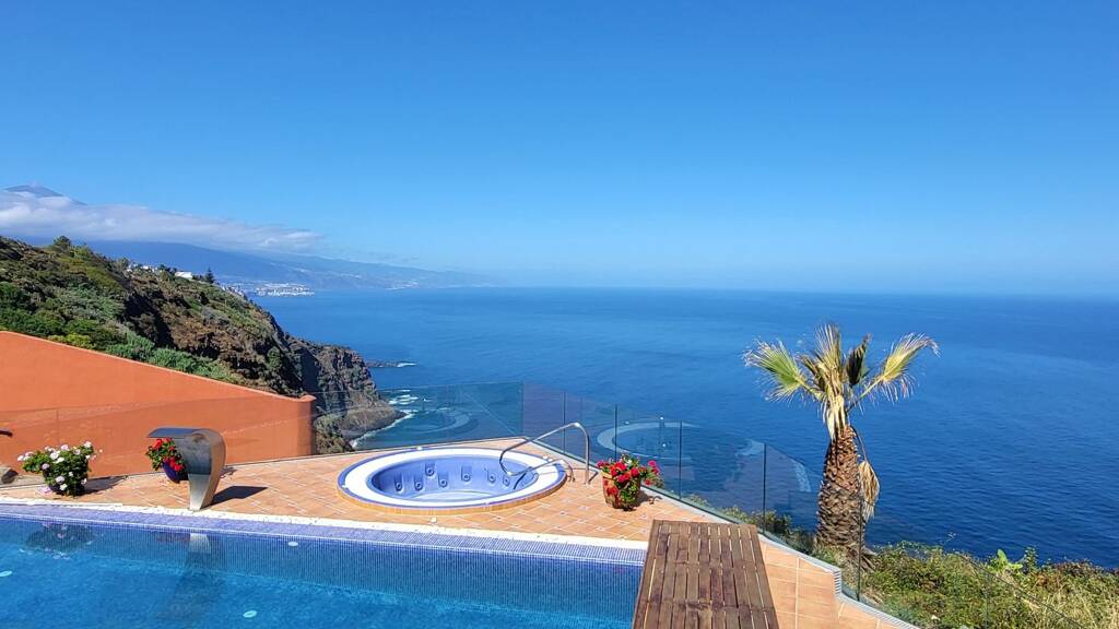 Entdecken Sie diese außergewöhnliche Villa, die Luxus und Komfort auf hohem Niveau in erster Meereslinie, über den Klippen von Tacoronte in einer der schönsten Lagen im Norden Teneriffas in der luxuriösen Urbanisation Jardin del Sol, vereint.