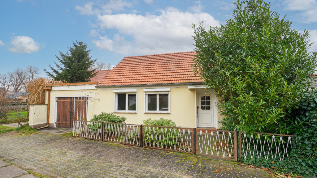 Das Haus verfügt über insgesamt vier gut geschnittene Zimmer sowie ein Badezimmer im Erdgeschoss. Eine Terrasse lädt zum Entspannen im Freien ein und bietet einen angenehmen Übergang zum ca. 300 m² großen Grundstück.