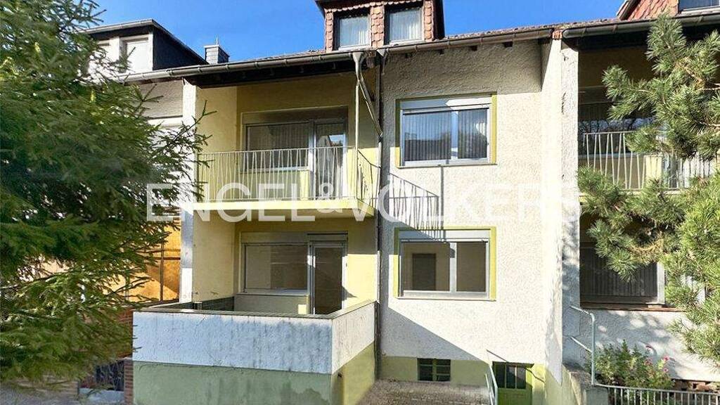 Dieses im Jahr 1954 in solider Massivbauweise errichtete Reihenhaus bietet mit ca. 105 m² Wohnfläche auf drei Ebenen viel Raum zur Entfaltung. Dank des klassischen und funktionalen Grundrisses lässt sich die Immobilie bei Bedarf in zwei separate Wohneinheiten unterteilen – ideal für Mehrgenerationenwohnen. Details zum Objekt: - geräumige Immobilie mit zwei möglichen Wohneinheiten - Renovierungsbedarf - klassischer Zuschnitt - voll unterkellert - Gas-Zentralheizung 1995 - 2- fach-verglaste Aluminiumfenster mit Rollläden 1979 - Biberschwanzdacheindeckung 1987 - altersgerechter Zustand gemäß Baujahr weitere Details: - kleines Gartengrundstück mit Gestaltungsmöglichkeiten - 4 mögliche Schlafzimmer - zwei Wohnküchen - zwei Tageslichtbäder mit Wanne/Dusche - Gäste-WC - zwei Balkone - überdachter Hauseingang Angaben gem. GEG: Energiebedarfsausweis, Endenergiebedarf 376,70 kWh/(m²a), Baujahr 1954, Energieträger Gas, Energieeffizienzklasse H, CO2-Ausstoß 91,10 kg/m²