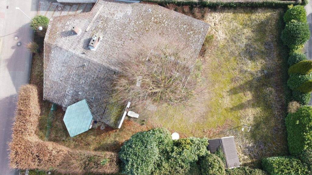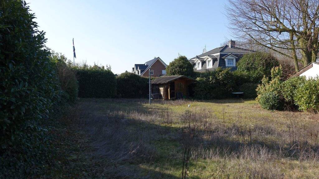 Das 1.018 m² große Grundstück mit Südausrichtung hat eine Straßenfrontbreite von 25,08 m und eine Seitenlänge von 40,60 m. Auf dem Grundstück befindet sich noch ein Bungalow mit altem Schwimmbad. Die Garage ist mit dem Haus verbunden. Der Altbestand ist nicht erhaltenswert. Die Abrisskosten gehen zu Lasten des Käufers. Mit einer Geschossflächenzahl (GFZ) von 0,3 und einer Grundflächenzahl (GRZ) von 0,2 bietet der Bebauungsplan genug für ein großes Einfamilienhaus mit ca. 220 m² oder ein Doppelhaus mit jeweils ca. 110 m². Es gilt eine eingeschossige Bauweise plus Dachgeschoss.