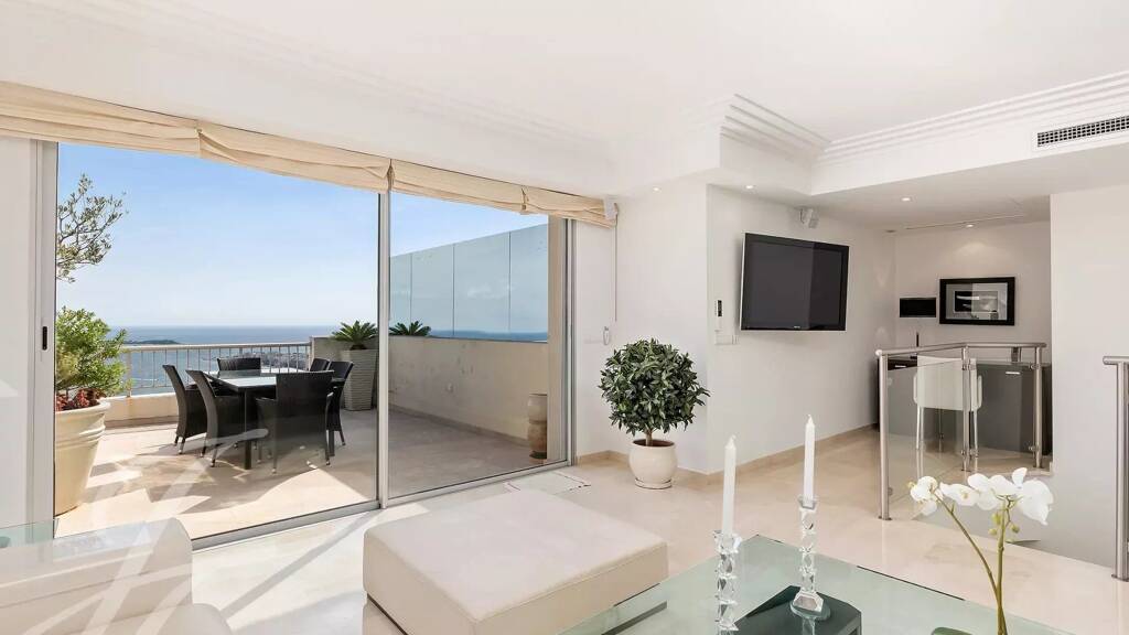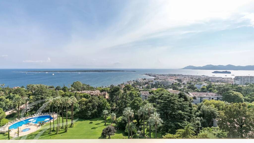 Diese schöne Wohnung bietet einen Panorama-Meerblick auf die Bucht von Cannes, die Iles de Lérins, die Stadt Cannes und den Park der Residenz.