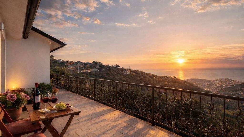 In erhöhter, sonniger Lage oberhalb des kleinen Ortsteils Artallo präsentiert sich diese attraktive Landhaus-Villa mit eindrucksvollem Panoramablick über die historische Altstadt von Porto Maurizio bis hin zum Mittelmeer. Die reine Südausrichtung sorgt das ganze Jahr über für hervorragende Lichtverhältnisse und eine angenehme Besonnung, während die geschützte Hügellage zugleich vor kühlen Nordwinden bewahrt.