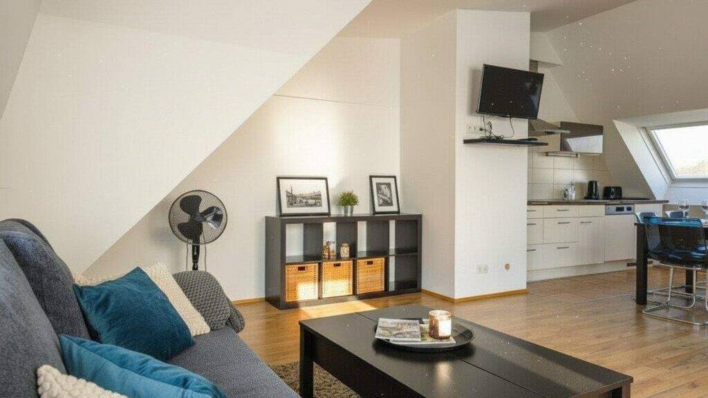 Diese möblierte DG-Maisonette mit 3 Zimmern und einer 8,75 m² großen Terrasse bietet auf rund 94,55 m² Wohnfläche eine und gut durchdachte Raumaufteilung: