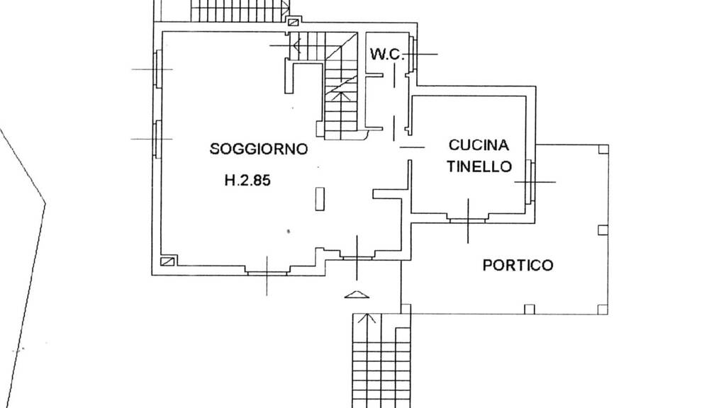 Das Haus verteilt sich auf drei Ebenen: das Untergeschoss, zugänglich durch eine interne Treppe, besteht aus einer Einzelgarage, Waschküche, Heizungsraum, Keller und Werkzeugraum.