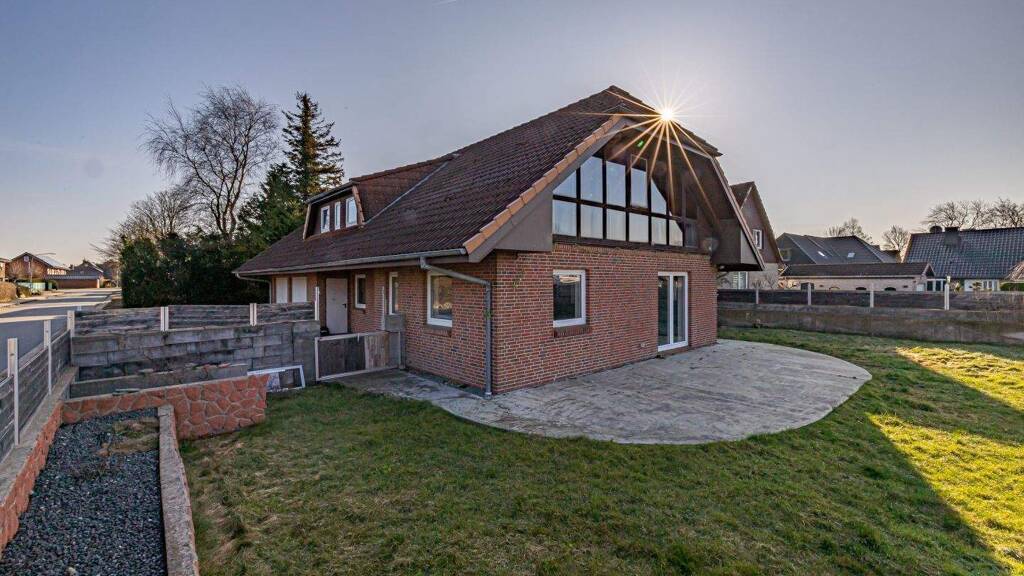 Dieses großzügige Einfamilienhaus ca. aus dem Baujahr 1988 befindet sich in einer familienfreundlichen und zugleich zentrumsnahen Lage von Handewitt. Mit einer Wohnfläche von ca. 168 m² sowie einer zusätzlichen Nutzfläche von ca. 124 m² auf einem ca. 758 m² großen Grundstück bietet die Immobilie viel Platz für die ganze Familie. Im Erdgeschoss erwartet Sie ein heller und einladender Wohn- und Essbereich mit direktem Zugang zur sonnigen Südwest-Terrasse. Der ca. im Jahr 2022 erneuerte Kamin sorgt besonders in der kälteren Jahreszeit für eine angenehme und behagliche Wohnatmosphäre. Die großzügige Küche wird ohne Einbauküche angeboten und überzeugt durch ihren besonderen Charakter. Ein integriertes Aquarium schafft eine außergewöhnliche Raumwirkung und verleiht dem Raum eine besondere Wohnqualität. Ergänzt wird das Raumangebot im Erdgeschoss durch ein Gäste-WC sowie eine zusätzliche Dusche im Hauswirtschaftsraum. Das Dachgeschoss bietet zwei Kinderzimmer mit Zugang zur Loggia, einen Abstellraum, der sich auch ideal als Arbeitszimmer nutzen lässt, ein geräumiges Schlafzimmer sowie ein Badezimmer. Ein besonderes Highlight ist die großzügige Galerie, die das offene Raumkonzept unterstreicht und vielfältige Nutzungsmöglichkeiten bietet - beispielsweise als Spielbereich, Leseecke oder Homeoffice. Die Südwest-Terrasse lädt zum Entspannen und Verweilen im Freien ein. Direkt am Haus gibt es ausreichend Platz für Ihre PKW oder auch für einen Caravan. Die ehemaligen Garagen wurden intern teilweise zu Nutzfläche (Abstellraum mit Aquarium) sowie teilweise als Erweiterung der Küche zur Wohnfläche umgebaut. Ein Rückbau in die ursprüngliche Nutzung ist grundsätzlich möglich. Beheizt wird das Haus über eine Ölheizung. Im Erdgeschoss wird die Wärme zusätzlich durch eine Fußbodenheizung unterstützt, in der Küche besteht zudem eine Installation für eine Elektrofußbodenheizung. Auch ist Glasfaser im Haus angeschlossen.