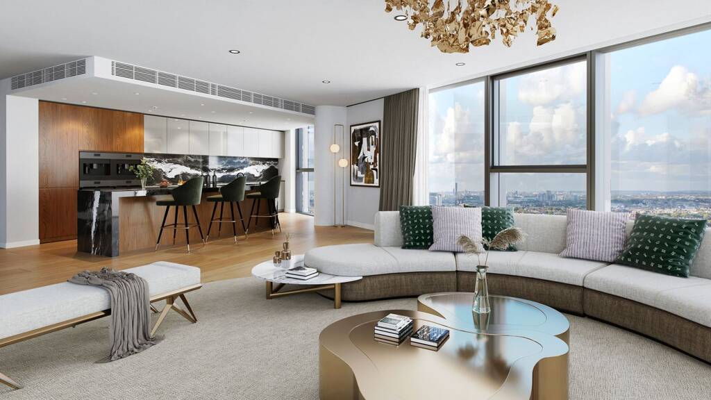 Gelegen in den Penthouse-Ebenen und im 34. Stock (Aufzug), bietet diese atemberaubende Wohnung mit vier Schlafzimmern und vier Badezimmern die Möglichkeit, eine der schönsten Ausblicke Londons zu genießen.  Im Inneren bietet das Gebäude vier Doppelzimmer, von denen drei ein eigenes Bad haben, sowie ein zusätzliches Badezimmer. Es gibt eine atemberaubende Terrasse neben dem Hauptschlafzimmer und eine sehr gut ausgestattete Küche sowie einen Essbereich und einen Empfangsraum mit atemberaubendem Blick auf Chelsea, die Themse, Battersea und darüber hinaus. Zusätzlich verfügt die Wohnung über Komfortkühlung, und ein spezieller Parkplatz kann durch separate Verhandlung gekauft werden.