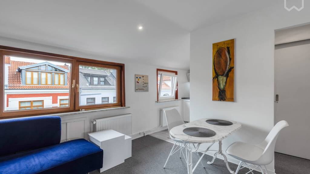 Die Dachgeschosswohnung liegt in sehr zentraler ruhiger Lage in unmittelbarer Nähe zur Bremer Innenstadt. Die Wohnung wurde gerade neu renoviert und saniert mit einer Kombination aus der modernen Einrichtung im Wohn-, Essbereich und Küche, die den Aufenthalt einzigartig machen. Sehr helle geräumige Wohnung, wo Sie sich gleich zu Hause fühlen! Unser Reinigungskraft kommt monatlich zu Ihnen.