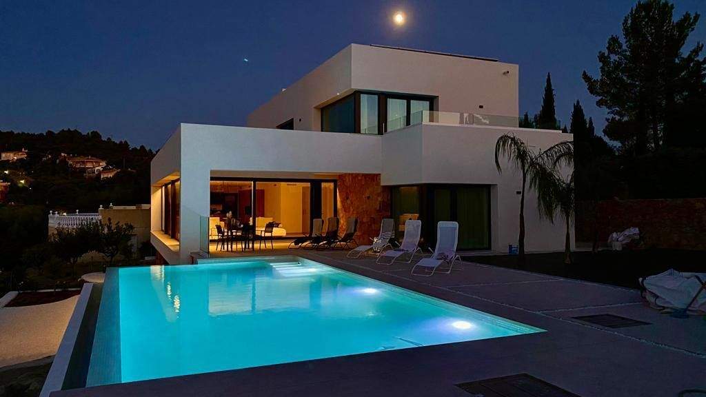 Die Lage, ebenerdig betretbar, ruhig in einer Sackgasse gelegen, angrenzend ans Naturschutzgebiet, mit ganztags Wintersonne. Die aussergewöhlich hohe Bauqualität und Ausführung mit besten, erlesenen Materialien. Der hohe Komfort durch Energie-Effizienz im Passiv-Bereich, mit Fotovoltaik und Batterien! Bodenheizung, Klima. Aufzug im Haus, um alle Etagen bequem zu erreichen. Gästewohnung im Untergeschoss. Doppelstöckige Garage mit Hebevorrichtung. Grosser beheizbarer Infinity-Pool mit Blick bis hoch zum Golf von Valencia. Bezaubernder mediterraner Garten mit alten Olivenbäumen. Sauna, Aussendusche. Diverse Terrassen.