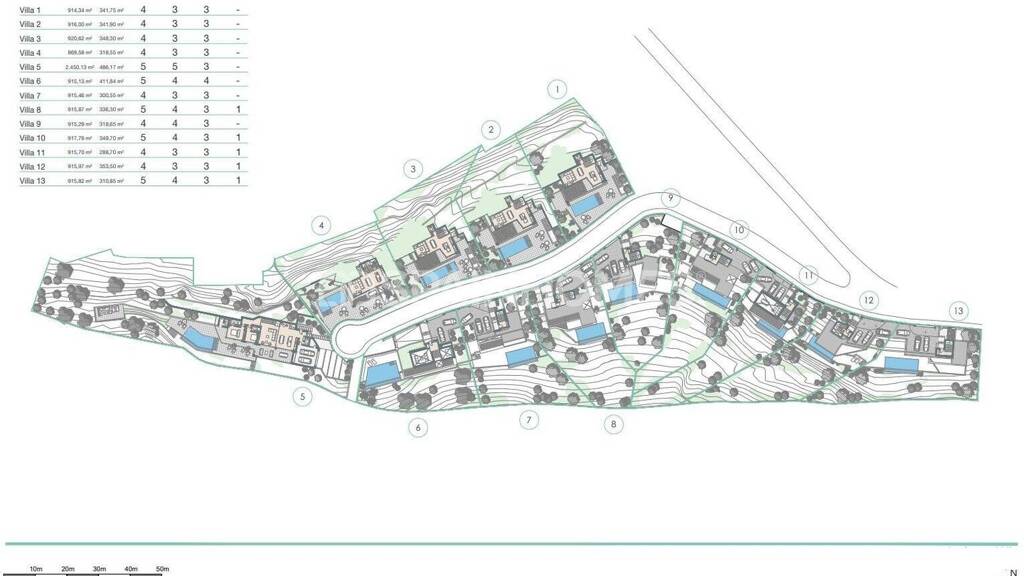 Die Siedlung umfasst 13 freistehende Häuser in einer bewachten Wohnanlage. Jedes Haus steht auf einem 900 Quadratmeter großen Grundstück. Sie verfügen über großzügige Terrassen, pflegeleichte Gärten und private Pools von etwa 40 m².