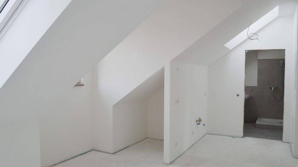 Die Dachgeschoss-Wohnung besteht aus einem Lebensraum mit Küche und Abstellmöglichkeit sowie einem Badezimmer mit Dusche.