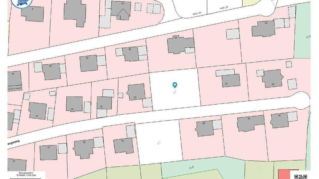 Das sonnige Baugrundstück befindet sich in einer gewachsenen Wohnsiedlung in ruhiger und attraktiver Lage am Südhang und umfasst ca. 806 m² Grundstücksgröße.