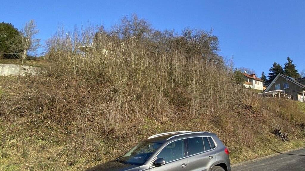Aktuell weist das Grundstück einen dichten Bewuchs aus Sträuchern und Bäumen auf.