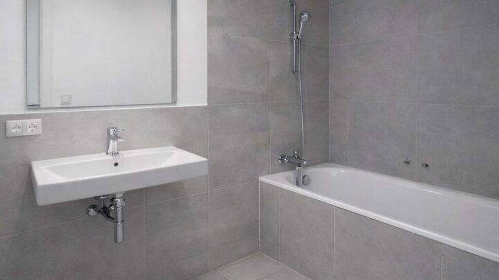 Das Badezimmer ist modern ausgestattet und verfügt über eine Dusche, WC sowie einen Anschluss für die Waschmaschine. Ergänzend steht ein separates WC zur Verfügung.