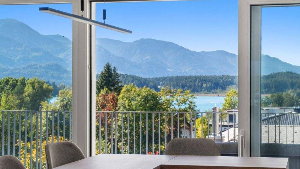 Dieses exklusive Penthouse vereint modernen Wohnkomfort mit einzigartigem Seepanorama. Auf einer Wohnfläche von rund 75 m² erwartet Sie ein stilvoll gestaltetes Zuhause, das keine Wünsche offenlässt. Das Highlight ist die großzügige Terrasse mit etwa 60 m², von der aus Sie einen traumhaften Blick auf den Faaker See und die umliegende Bergwelt genießen können - ein Ort, der zum Entspannen und Verweilen einlädt. Die Wohnung besticht durch ihre süd-westliche Ausrichtung, die für sonnendurchflutete Räume und atemberaubende Sonnenuntergänge sorgt. Dank der Erdwärme-Tiefenbohrung wohnen Sie energieeffizient und umweltfreundlich. Für zusätzlichen Komfort sorgt die Deckenkühlung im Wohn- und Schlafzimmer, die auch an heißen Sommertagen ein angenehmes Raumklima gewährleistet. In nur fünf Gehminuten erreichen Sie den öffentlichen Seezugang, der Ihnen erfrischende Badefreuden im kristallklaren Wasser des Faaker Sees ermöglicht. Das im Jahr 2022 errichtete Gebäude entspricht modernen Baustandards und bietet eine hochwertige Ausstattung. Ein Tiefgaragenabstellplatz sowie ein großzügiges Kellerabteil runden das attraktive Gesamtpaket ab.