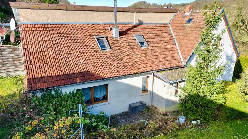 Die für die Hofferbertaue typische Doppelhaushälfte wurde ca. 1938 massiv errichtet und das Haus wurde ca. 1983 durch einen Anbau deutlich erweitert. Einige Modernisierungen wie bei der Elektrik, den Fenstern, der Heizung oder der Fassade folgten in den 1990er Jahren. Zuletzt kam ein wasserführender Kaminofen in das Wohnzimmer. Er sorgt nicht nur dort für wohlige Wärme, sondern unterstützt dank Pufferspeicher im Keller auch die übrige Heizung.