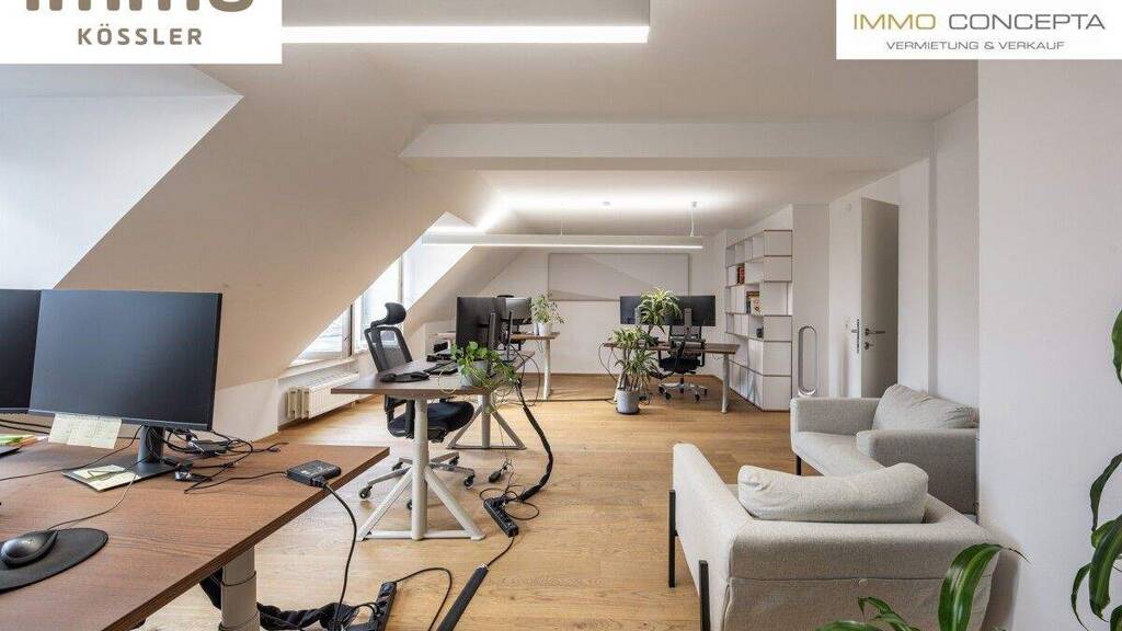 Dieses außergewöhnliche Dachgeschossbüro befindet sich im 4. Obergeschoss eines gepflegten Innsbrucker Stadthauses in zentraler Lage der Anichstraße, nur wenige Gehminuten von der Universitätsklinik entfernt. Das Gebäude verfügt über einen Lift. Die Einheit wurde vor nicht allzu langer Zeit komplett renoviert und präsentiert sich mit schönen Holzböden, modernen Schallschutzelementen sowie einer klaren, zeitgemäßen Raumgestaltung. Auf insgesamt ca. 143,44 m² bietet das Büro eine vielseitige Aufteilung: - Vier helle Büroräume mit Südausrichtung, ideal für 2-4 Arbeitsplätze - Großzügiger Besprechungsraum - Geräumige Teeküche mit direktem Zugang zur ruhigen Loggia im Hinterhof - Bad bzw. Abstellraum, Toilette und ein einladender Garderobenbereich - Die schöne Loggia bietet eine entspannte Rückzugsmöglichkeit für Pausen und rundet das besondere Ambiente des Dachgeschosses ab.