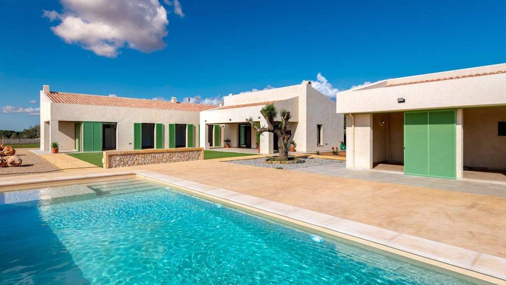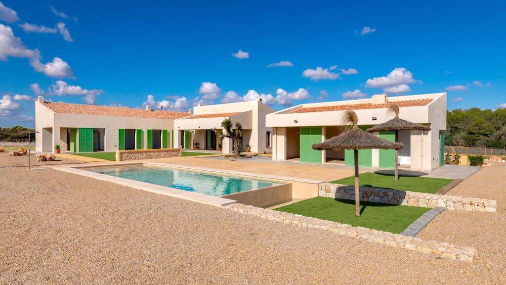 Diese moderne Neubaufinca befindet sich im Südosten Mallorcas, nur etwa 15 Minuten von Campos entfernt, und bietet absolute Privatsphäre inmitten unberührter Natur. Von der Finca aus genießt man einen traumhaften Panoramablick über die weite Landschaft bis hin zum bekannten Klosterberg San Salvador. Die Umgebung ist ideal für Naturliebhaber und Ruhesuchende - zahlreiche Wanderwege führen durch die abwechslungsreiche Landschaft, unter anderem zu einem Talaiot-Dorf ganz in der Nähe.