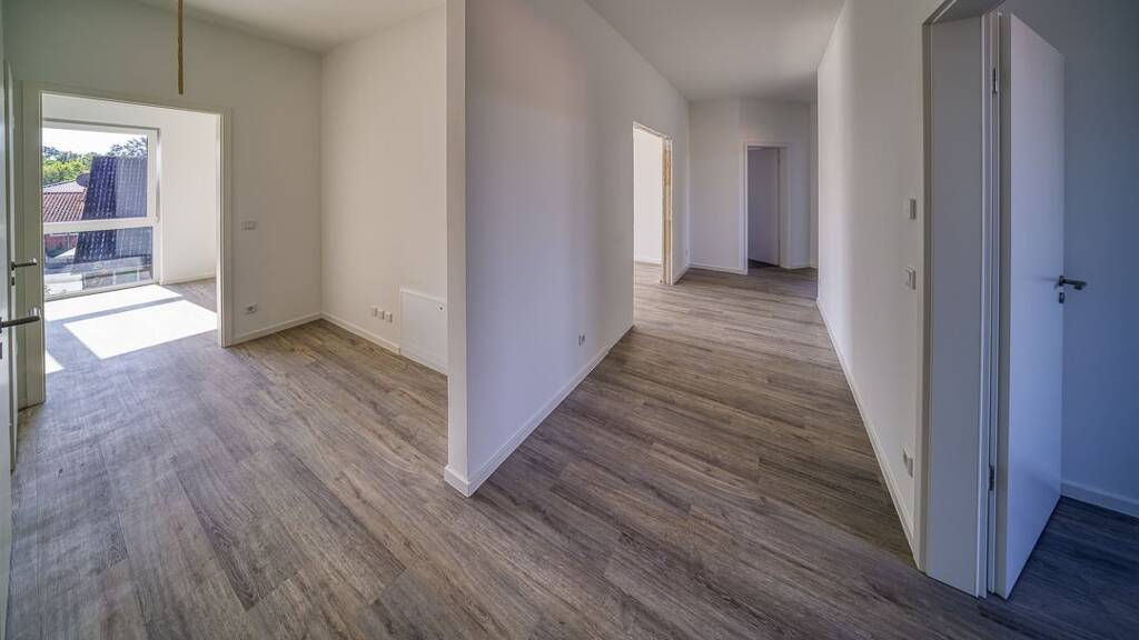 Der großzügige Wohn- und Essbereich bildet das Herzstück der Wohnung und bietet viel Platz für gemeinsames Wohnen und Entspannen. Durch die großen Fenster fällt viel Tageslicht in die Räume und schafft eine besonders angenehme Wohnatmosphäre. Von hier aus gelangen Sie direkt auf den Balkon, der zusätzlichen Platz zum Entspannen im Freien bietet.
