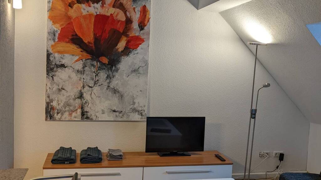 Sehr schöne und frisch renovierte, voll-möblierte Nichtraucherwohnung mit Emporen-Schlafzimmer, Esszimmer, kleinem Nebenraum mit Kleiderschrank, Wohnzimmer und Küche in ruhiger Lage.