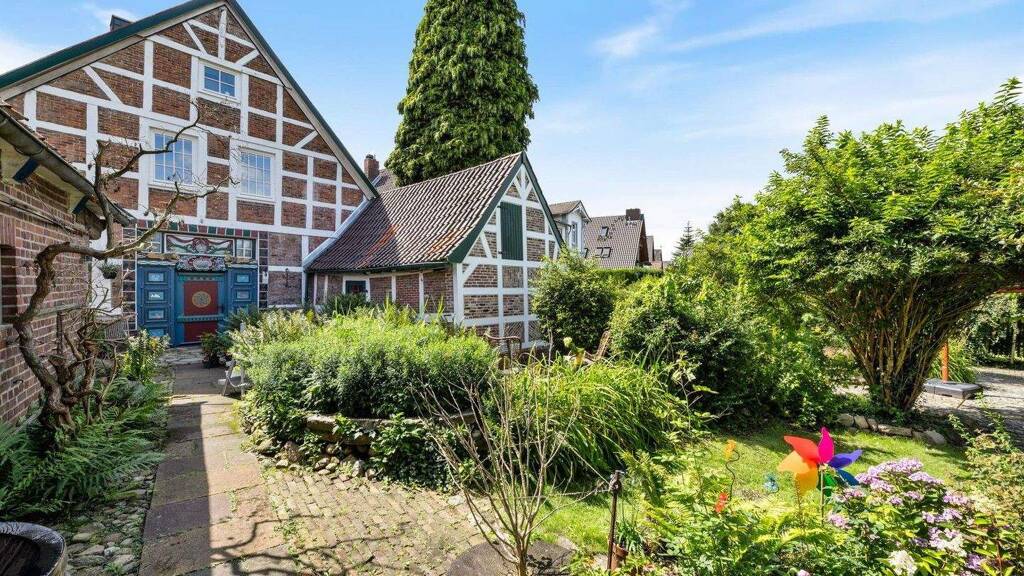 Zum Verkauf steht ein historisches Fachwerk-Ensemble aus dem Jahr 1669 in Jork-Estebrügge, umfassend kern- und fassadensaniert und unter Ensembleschutz stehend. Das Anwesen bietet ca. 360 m² Wohnfläche auf einem Grundstück von rund 1.400 m² mit direktem Zugang zur Este und eigenem Bootsanleger.
